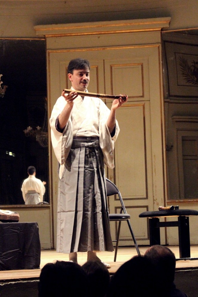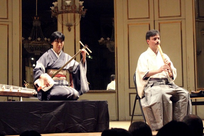 Venait ensuite la musique de chambre avec du koto accompagné d’une flute (dont j’ai perdu l nom) et bien évidemment de shamisen. C’était très sympa même si tout de suite plus « classique ». J’étais au 6eme rang mais j’entendais mal les explications données par les musiciens, dommage.