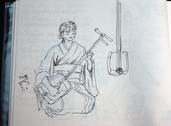 J’aimais particulièrement la position des joueurs de taiko, mais je suis pas trop à l’aise avec le dessin « sur le vif » comme ça, mais bon j’essaye de m’y mettre, c’est un début.