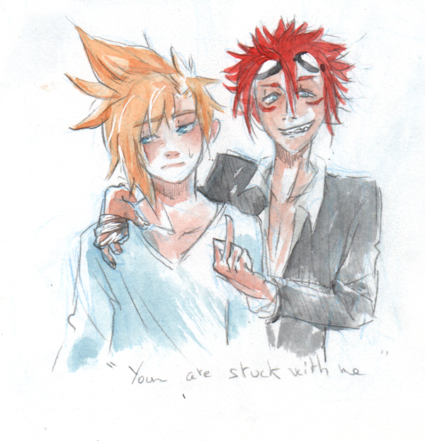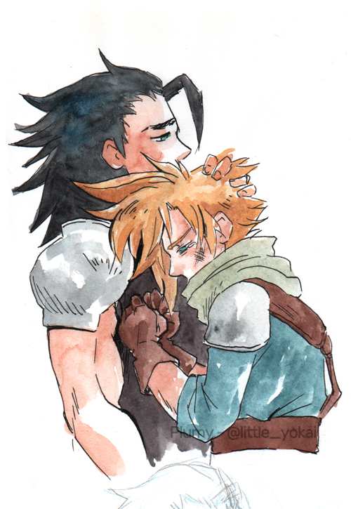 Avec le retour de FF7 dans mon cœur, et surtout, SURTOUT, du ship Cloud et Zack (Clack ou Zakkura de son petit nom) qui me revient toujours dans la face dès que je m’approche de FF7, je me suis mise à faire des petits dessins gratuits de ces 2 la.